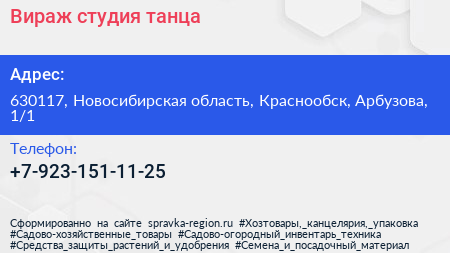 Вираж, студия танца по адресу 630117, Новосибирская область, Краснообск, Арбузова, 1/1 в дальнейшем Организация, размещена в следующих категориях: