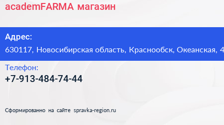 academFARMA, магазин по адресу 630117, Новосибирская область, Краснообск, Океанская, 4 в дальнейшем Организация, размещена в следующих категориях: