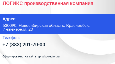 ЛОГИКС, производственная компания по адресу 630090, Новосибирская область, Краснообск, Инженерная, 20 в дальнейшем Организация, размещена в следующих категориях: