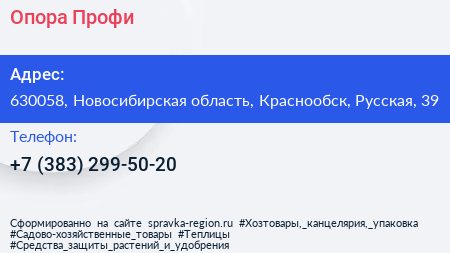 Опора Профи по адресу 630058, Новосибирская область, Краснообск, Русская, 39 в дальнейшем Организация, размещена в следующих категориях: