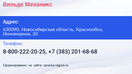 Вильде Механикс по адресу 630090, Новосибирская область, Краснообск, Инженерная, 20 в дальнейшем Организация, размещена в следующих категориях: