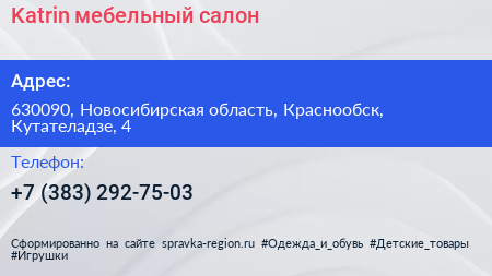 Katrin, мебельный салон по адресу 630090, Новосибирская область, Краснообск, Кутателадзе, 4 в дальнейшем Организация, размещена в следующих категориях: