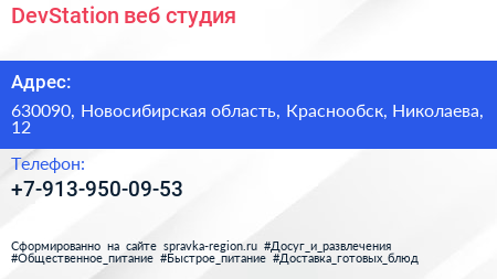DevStation, веб-студия по адресу 630090, Новосибирская область, Краснообск, Николаева, 12 в дальнейшем Организация, размещена в следующих категориях: