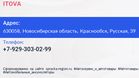 ITOVA по адресу 630058, Новосибирская область, Краснообск, Русская, 39 в дальнейшем Организация, размещена в следующих категориях: