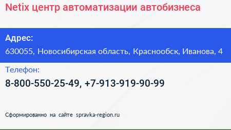Netix, центр автоматизации автобизнеса по адресу 630055, Новосибирская область, Краснообск, Иванова, 4 в дальнейшем Организация, размещена в следующих категориях: