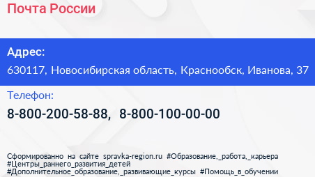 Почта России по адресу 630117, Новосибирская область, Краснообск, Иванова, 37 в дальнейшем Организация, размещена в следующих категориях: