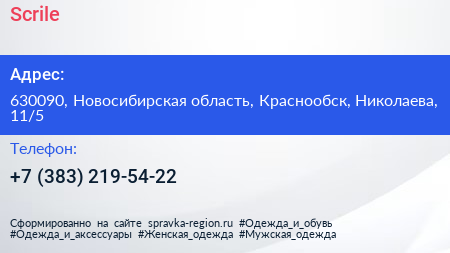 Scrile по адресу 630090, Новосибирская область, Краснообск, Николаева, 11/5 в дальнейшем Организация, размещена в следующих категориях: