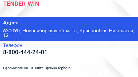 TENDER WIN по адресу 630090, Новосибирская область, Краснообск, Николаева, 12 в дальнейшем Организация, размещена в следующих категориях: