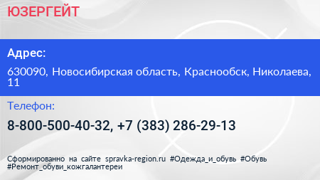 ЮЗЕРГЕЙТ по адресу 630090, Новосибирская область, Краснообск, Николаева, 11 в дальнейшем Организация, размещена в следующих категориях: