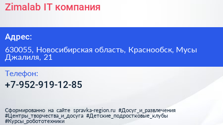 Zimalab, IT-компания по адресу 630055, Новосибирская область, Краснообск, Мусы Джалиля, 21 в дальнейшем Организация, размещена в следующих категориях: