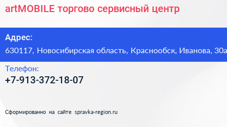 artMOBILE, торгово-сервисный центр по адресу 630117, Новосибирская область, Краснообск, Иванова, 30а в дальнейшем Организация, размещена в следующих категориях: