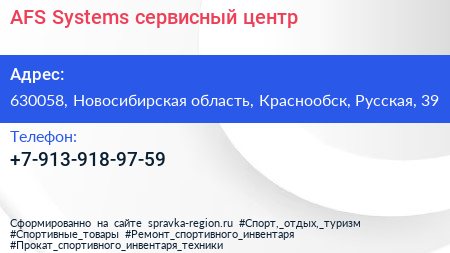 AFS-Systems, сервисный центр по адресу 630058, Новосибирская область, Краснообск, Русская, 39 в дальнейшем Организация, размещена в следующих категориях: