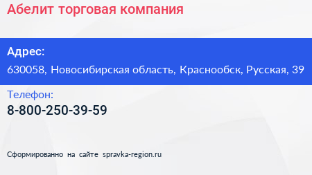 Абелит, торговая компания по адресу 630058, Новосибирская область, Краснообск, Русская, 39 в дальнейшем Организация, размещена в следующих категориях: