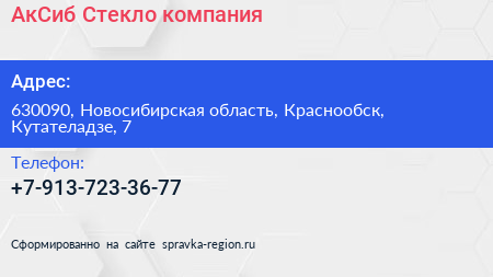АкСиб Стекло, компания по адресу 630090, Новосибирская область, Краснообск, Кутателадзе, 7 в дальнейшем Организация, размещена в следующих категориях: