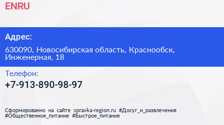 ENRU по адресу 630090, Новосибирская область, Краснообск, Инженерная, 18 в дальнейшем Организация, размещена в следующих категориях: