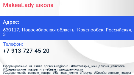 MakeaLady, школа по адресу 630117, Новосибирская область, Краснообск, Российская, 3 в дальнейшем Организация, размещена в следующих категориях: