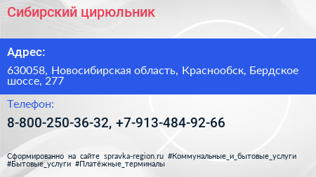 Сибирский цирюльник по адресу 630058, Новосибирская область, Краснообск, Бердское шоссе, 277 в дальнейшем Организация, размещена в следующих категориях: