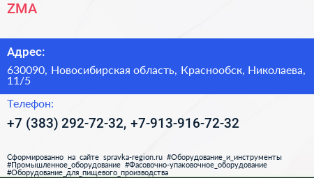 ZMA по адресу 630090, Новосибирская область, Краснообск, Николаева, 11/5 в дальнейшем Организация, размещена в следующих категориях: