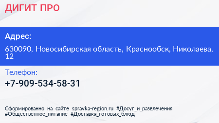 ДИГИТ ПРО по адресу 630090, Новосибирская область, Краснообск, Николаева, 12 в дальнейшем Организация, размещена в следующих категориях: