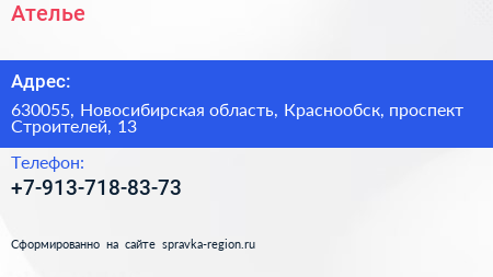 Ателье по адресу 630055, Новосибирская область, Краснообск, проспект Строителей, 13 в дальнейшем Организация, размещена в следующих категориях: