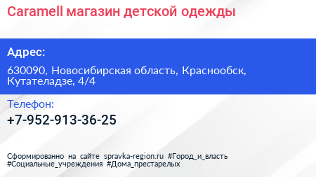 Caramell, магазин детской одежды по адресу 630090, Новосибирская область, Краснообск, Кутателадзе, 4/4 в дальнейшем Организация, размещена в следующих категориях: