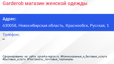 Garderob, магазин женской одежды по адресу 630058, Новосибирская область, Краснообск, Русская, 1 в дальнейшем Организация, размещена в следующих категориях: