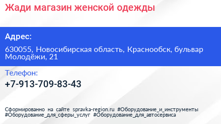 Жади, магазин женской одежды по адресу 630055, Новосибирская область, Краснообск, бульвар Молодёжи, 21 в дальнейшем Организация, размещена в следующих категориях: