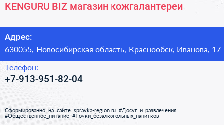 KENGURU.BIZ, магазин кожгалантереи по адресу 630055, Новосибирская область, Краснообск, Иванова, 17 в дальнейшем Организация, размещена в следующих категориях:
