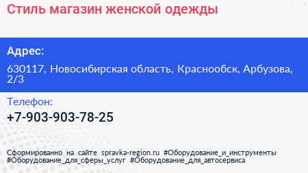 Стиль, магазин женской одежды по адресу 630117, Новосибирская область, Краснообск, Арбузова, 2/3 в дальнейшем Организация, размещена в следующих категориях:
