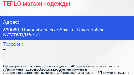 TEPLO, магазин одежды по адресу 630090, Новосибирская область, Краснообск, Кутателадзе, 4/4 в дальнейшем Организация, размещена в следующих категориях: