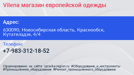Vilena, магазин европейской одежды по адресу 630090, Новосибирская область, Краснообск, Кутателадзе, 4/4 в дальнейшем Организация, размещена в следующих категориях: