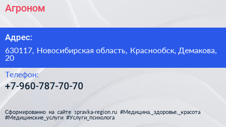 Агроном+ по адресу 630117, Новосибирская область, Краснообск, Демакова, 20 в дальнейшем Организация, размещена в следующих категориях: