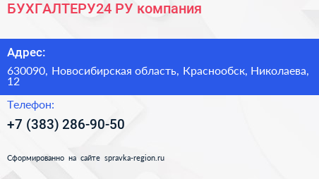 БУХГАЛТЕРУ24.РУ, компания по адресу 630090, Новосибирская область, Краснообск, Николаева, 12 в дальнейшем Организация, размещена в следующих категориях: