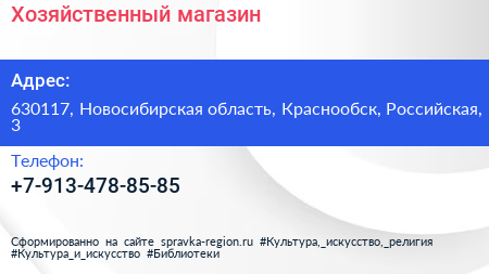 Хозяйственный магазин по адресу 630117, Новосибирская область, Краснообск, Российская, 3 в дальнейшем Организация, размещена в следующих категориях: