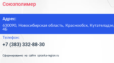 Союзполимер по адресу 630090, Новосибирская область, Краснообск, Кутателадзе, 4Б в дальнейшем Организация, размещена в следующих категориях:
