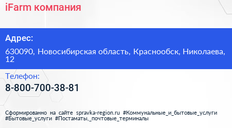 iFarm, компания по адресу 630090, Новосибирская область, Краснообск, Николаева, 12 в дальнейшем Организация, размещена в следующих категориях: