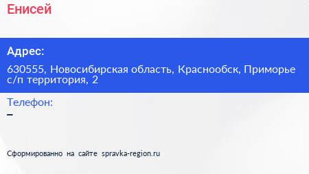 Енисей по адресу 630555, Новосибирская область, Краснообск, Приморье с/п территория, 2 в дальнейшем Организация, размещена в следующих категориях: