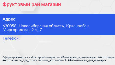 Фруктовый рай, магазин по адресу 630058, Новосибирская область, Краснообск, Миргородская 2-я, 7 в дальнейшем Организация, размещена в следующих категориях: