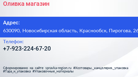 Оливка, магазин по адресу 630090, Новосибирская область, Краснообск, Пирогова, 26 в дальнейшем Организация, размещена в следующих категориях: