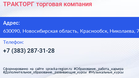 ТРАКТОРГ, торговая компания по адресу 630090, Новосибирская область, Краснообск, Николаева, 7 в дальнейшем Организация, размещена в следующих категориях:
