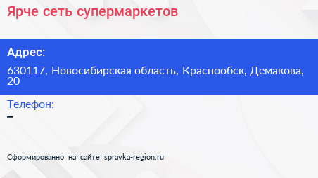 Ярче!, сеть супермаркетов по адресу 630117, Новосибирская область, Краснообск, Демакова, 20 в дальнейшем Организация, размещена в следующих категориях: