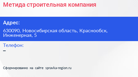 Метида, строительная компания по адресу 630090, Новосибирская область, Краснообск, Инженерная, 5 в дальнейшем Организация, размещена в следующих категориях:
