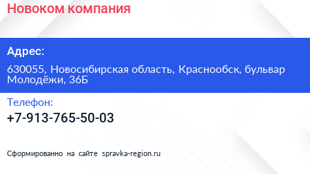 Новоком, компания по адресу 630055, Новосибирская область, Краснообск, бульвар Молодёжи, 36Б в дальнейшем Организация, размещена в следующих категориях: