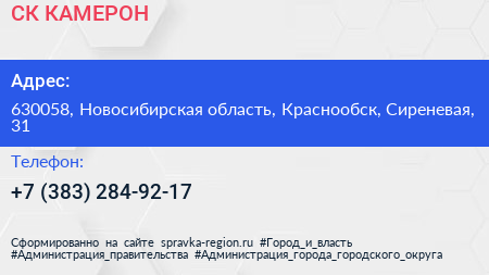 СК КАМЕРОН по адресу 630058, Новосибирская область, Краснообск, Сиреневая, 31 в дальнейшем Организация, размещена в следующих категориях: