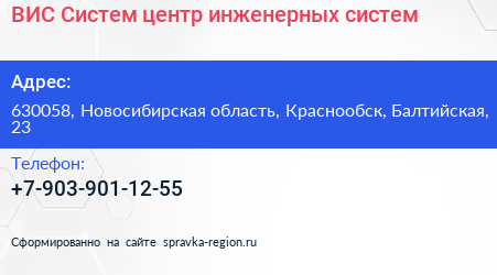 ВИС Систем, центр инженерных систем по адресу 630058, Новосибирская область, Краснообск, Балтийская, 23 в дальнейшем Организация, размещена в следующих категориях: