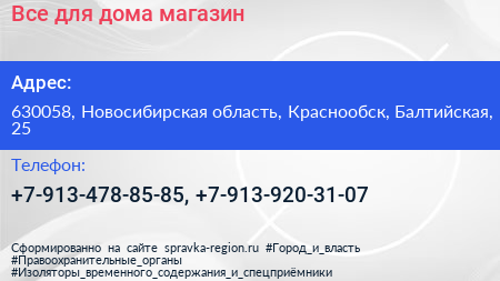 Все для дома, магазин по адресу 630058, Новосибирская область, Краснообск, Балтийская, 25 в дальнейшем Организация, размещена в следующих категориях: