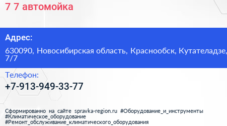 7/7, автомойка по адресу 630090, Новосибирская область, Краснообск, Кутателадзе, 7/7 в дальнейшем Организация, размещена в следующих категориях: