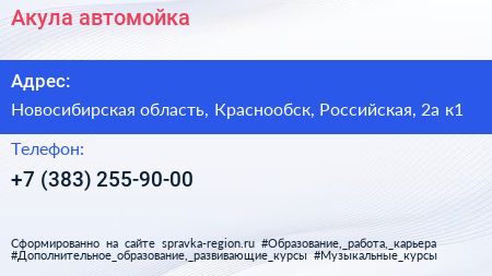 Акула, автомойка по адресу Новосибирская область, Краснообск, Российская, 2а к1 в дальнейшем Организация, размещена в следующих категориях: