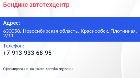 Бендикс, автотехцентр по адресу 630058, Новосибирская область, Краснообск, Плотинная, 2/11 в дальнейшем Организация, размещена в следующих категориях: