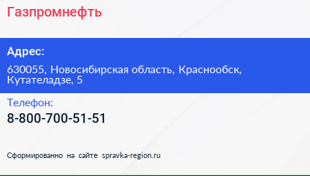 Газпромнефть по адресу 630055, Новосибирская область, Краснообск, Кутателадзе, 5 в дальнейшем Организация, размещена в следующих категориях: